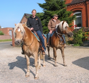 Beide Haflinger sind sehr menschenbezogen, anhänglich (was manchmal bei der Größe etwas unhandlich ist) und absolut brav. Sie lernen sehr schnell und sind neugierig und cool im Umgang mit neuen Dingen.