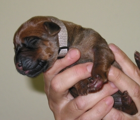Nr. 3, blau, Rüde, 500 g, korrekter Ridge, Rute ohne Tastbefund. Leider hat es dieser kleine Kerl nicht geschafft und ist am Sonntag Nachmittag über die Regenbogenbrücke gegangen. |