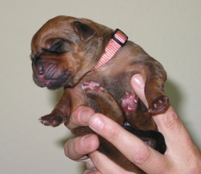 Nr. 6, Hündin, rosa, 560 g, korrekter Ridge, Rute ohne Tastbefund |