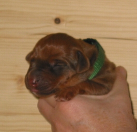 | Nr. 4, grün, Rüde, livernose, 535 g, korrekter Ridge, Rute und DS zur Zeit ohne Tastbefund, weißer Brustfleck |