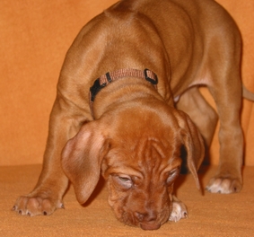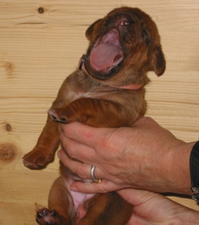 Nr. 5, rot, Hündin, livernose, muss sich erst einmal recken... |