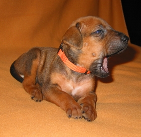 Nr. 8, orange, Rüde, der kleinste Rüde, aber fit wie ein Turnschuh - einen Namen haben wir vielleicht auch schon: Giotto - weil er so süß ist... |
