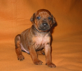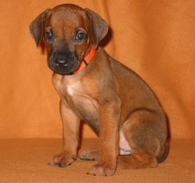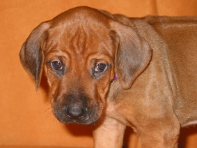 Nr. 8, orange, Rüde, 310 g, korrekter Ridge, Rute und DS zur Zeit ohne Tastbefund, kleiner weißer Brustfleck. |