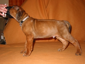 Nr. 9, braun, Rüde, livernose, nimmt sich gewichtsmäßig nichts mit "Frau Rosa". |