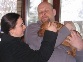 Hier die Welpen mit ihren neuen "Eltern" in der Reihenfolge der Abholung...