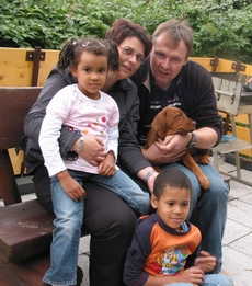 Famous Massai ist jetzt bei Anke und Uwe Schmidt in Schortens zu Hause. Zur Familie gehören die Kinder Sarah, Rebecca und Bastian, der Schäferhund-Mix Bob, der Famous gleich adoptiert hat, und die Katzen Jan, Max, Sternchen, Melli und Mia.