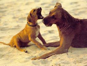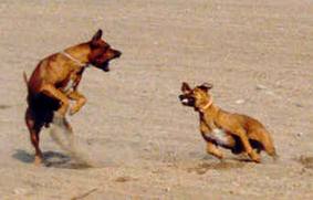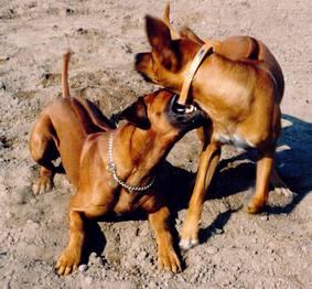 Ich weiß nicht, wieviel Zeit vergangen war, als sich Dustys müder Kopf endlich hob und sie mich mit ungläubigen Augen ansah. Mir stockte der Atem, ich hatte es geschafft!!! Nach ein paar Minuten rappelte sie sich hoch, schüttelte sich und trottete neben uns, die wir alle noch ganz sprachlos waren, nach Hause. Balou leckte fortwährend Dustys Fang, so als wenn sie sagen wollte: "Ich wollte das ganz bestimmt nicht, und es kommt auch nie wieder vor!" Eng aneinander gekuschelt schliefen die beiden ein. Der Schreck saß uns noch wochenlang in den Gliedern und ich schwor mir: Nie wieder tragen meine Hunde beim Spielen ein Halsband (wenn es nicht unbedingt sein muß)!